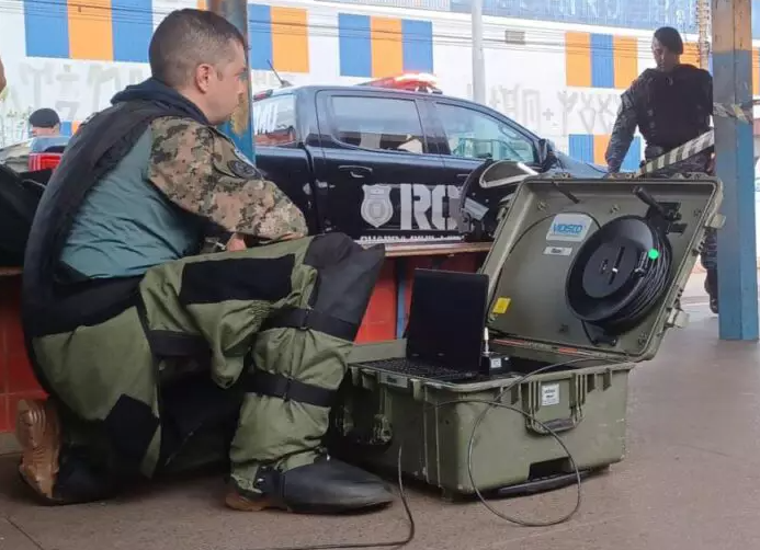O foco da operação está na análise e neutralização dos pacotes. O Esquadrão Antibomba da Polícia Militar está no local e o técnico responsável realiza a análise dos artefatos via computador. O objetivo é determinar a composição exata do material e avaliar se a bomba é funcional e oferece risco real.