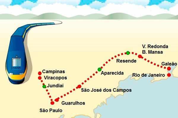 O percurso incluirá quatro estações estratégicas. No estado de São Paulo, paradas estão planejadas em São José dos Campos e Jacareí. No Rio de Janeiro, o trem passará por Resende e Volta Redonda. Os pontos finais do trajeto serão nas estações de Guarulhos (SP) e na tradicional Estação Leopoldina (RJ), no centro das respectivas capitais.